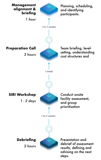 The process is robust yet practical, balancing technical rigor with real-world applicability. SIRI is not an audit – Certified SIRI Assessors guide companies through the assessment, ensuring that findings translate into sustainable, value-adding initiatives—not just theoretical recommendations.