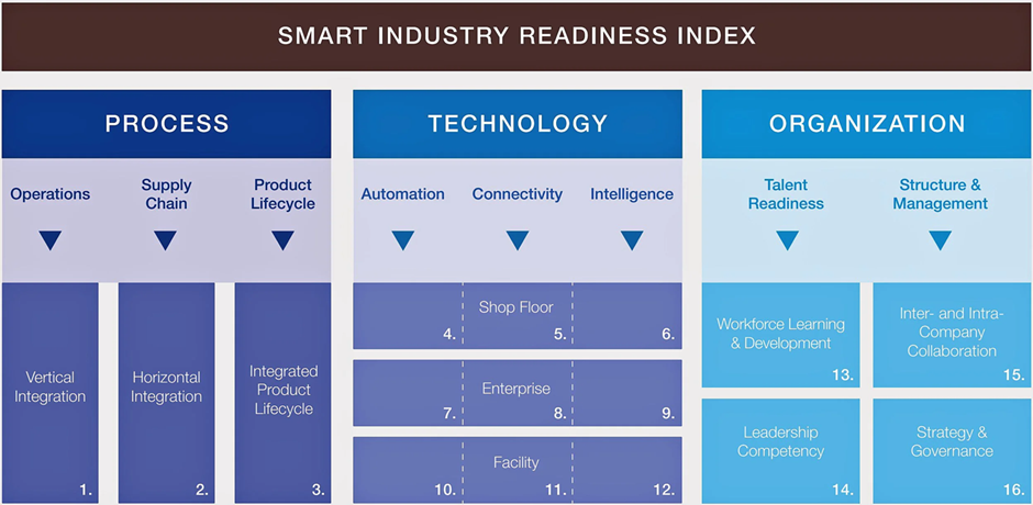 The Smart Industry Readiness Index (SIRI) is designed to cut through this complexity. Developed as the world’s first independent digital maturity assessment toolkit for manufacturers, SIRI provides a comprehensive, impartial framework to evaluate digital readiness across three core building blocks: Process, Technology, and Organisation. Within these, SIRI assesses 16 critical dimensions, from shop floor automation and enterprise connectivity to workforce learning and leadership competency.