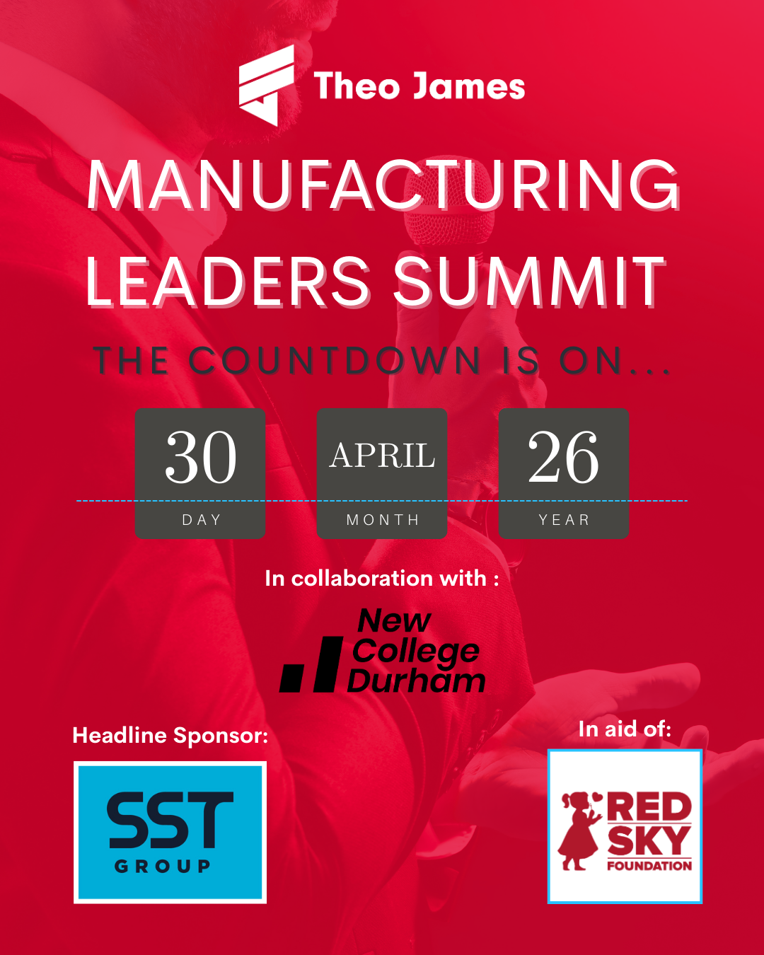 After the success of the Manufacturing Leaders Podcast, Theo James Recruitment and New College Durham are bringing the manufacturing community together, with the launch of the Manufacturing Leaders Summit, a not-for-profit event supporting the Red Sky Foundation.